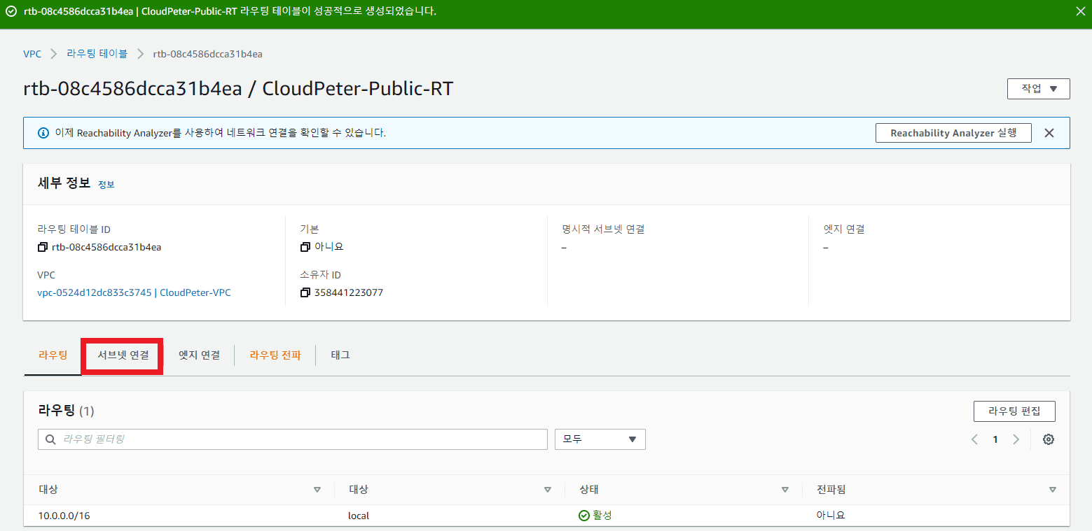 퍼블릭 라우팅 테이블 생성 및 서브넷 연결