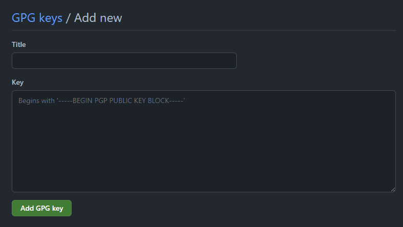 GPG keys 영역에 초록색 New GPG key 버튼을 눌러주자.