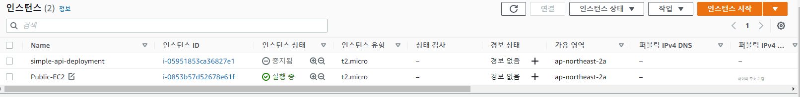 이름: Public-EC2 OS 이미지: Amazon Machine Image(AMI), 64bit, 인스턴스 유형: T2.mirco 키 페어: 항상 사용하는 그거
