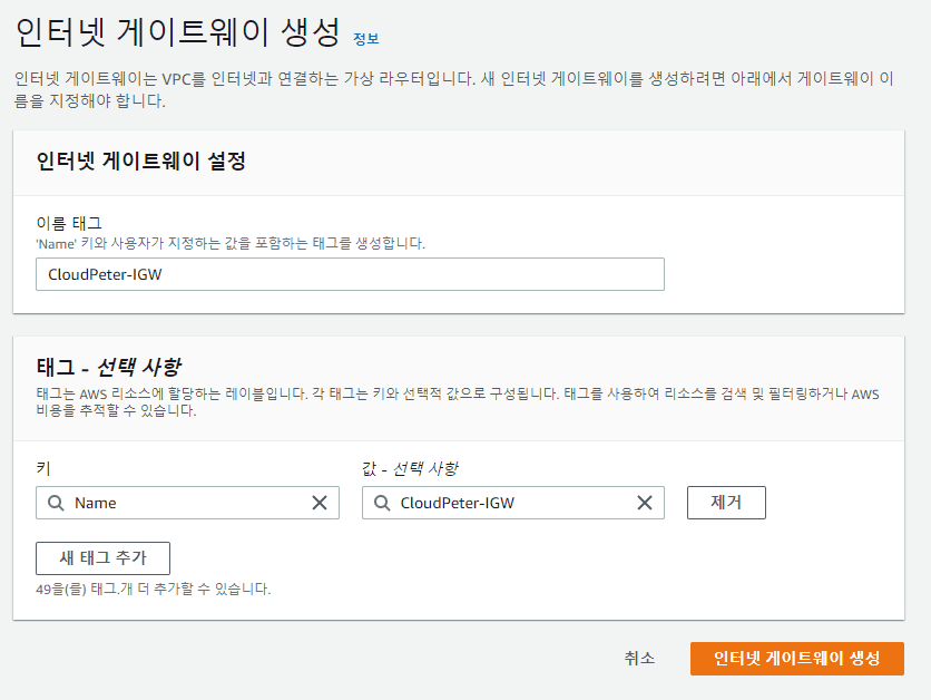 | 인터넷 게이트웨이 생성 및 VPC 연결 | |