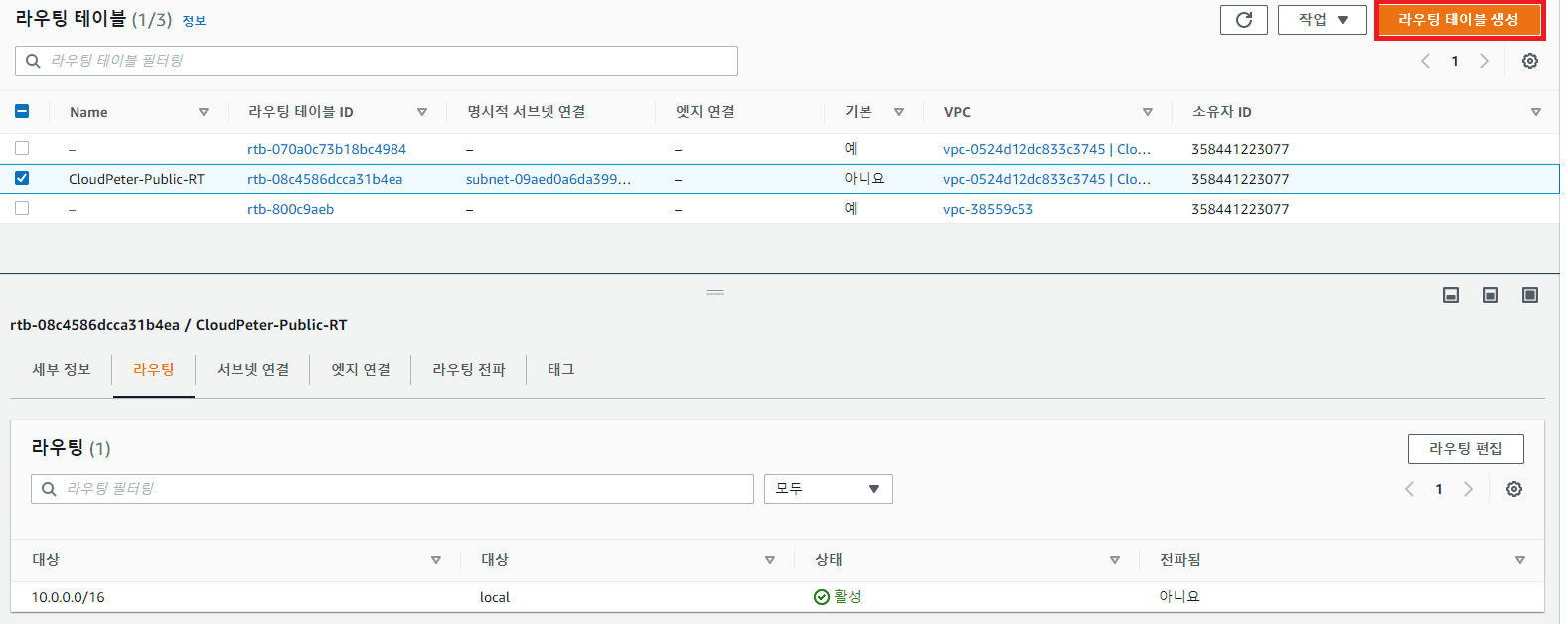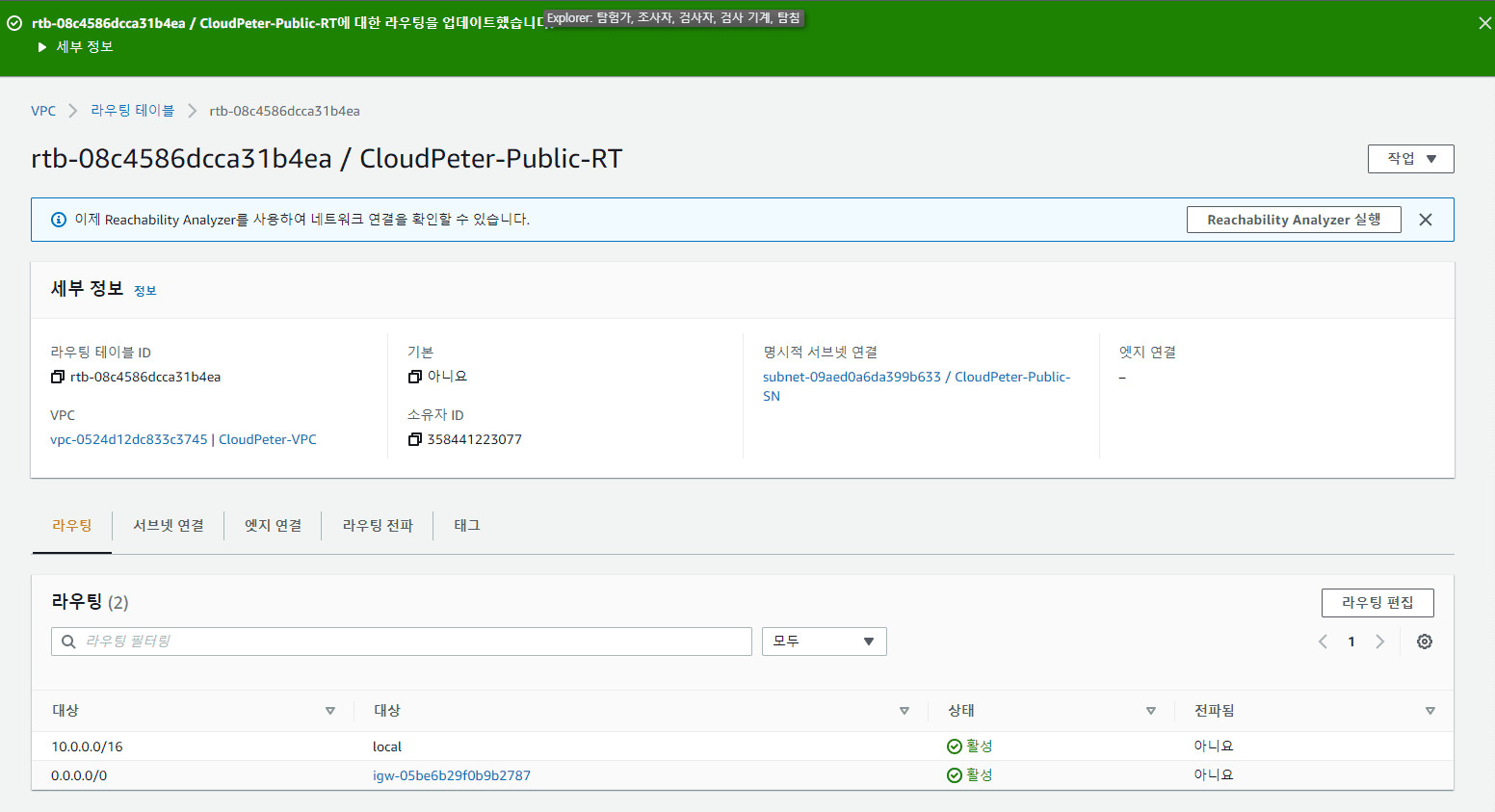 | 퍼블릭 라우팅 테이블 생성 및 서브넷 연결 | |