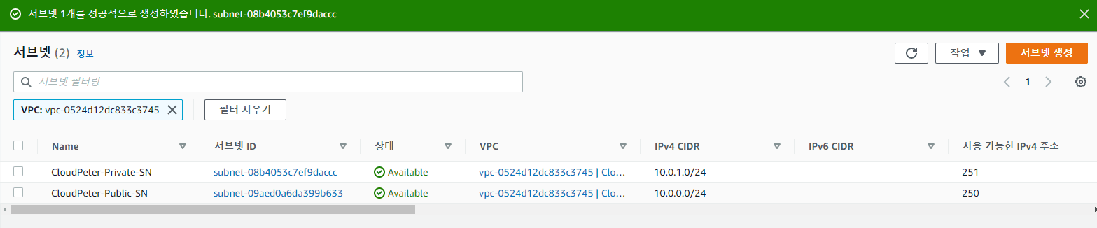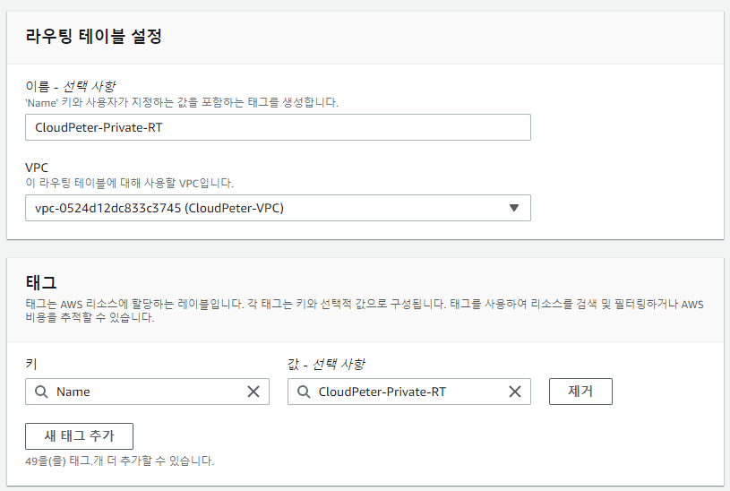 프라이빗 서브넷 (CloudPeter-Private-SN) 선택